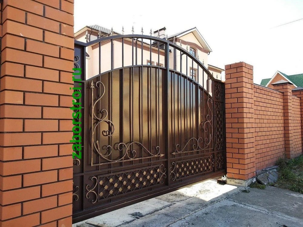 Откатные ворота с ковкой пример 2