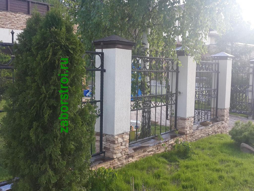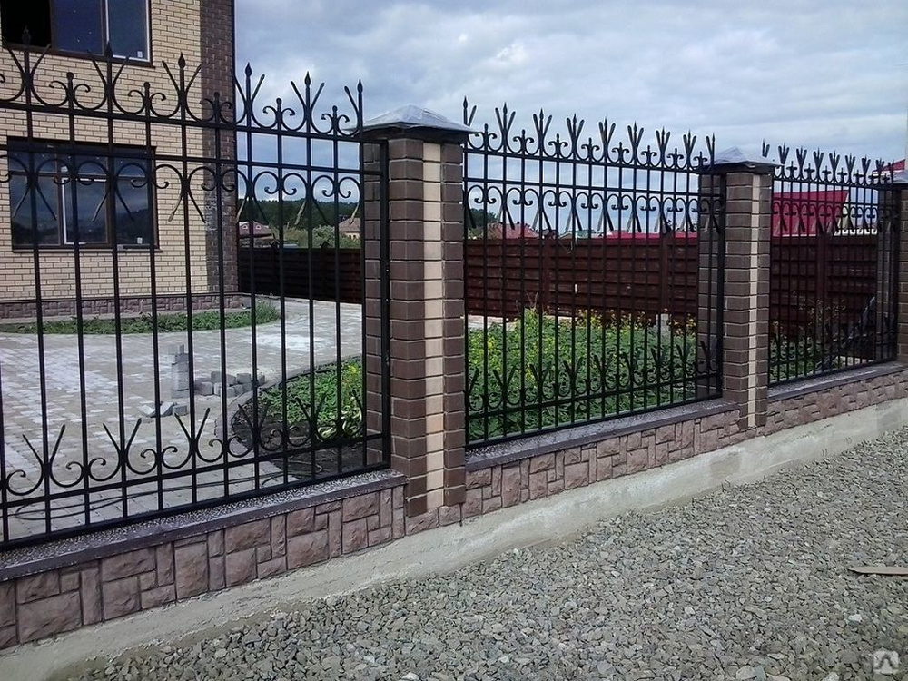 Сварные заборы с кирпичными столбами 40 метров